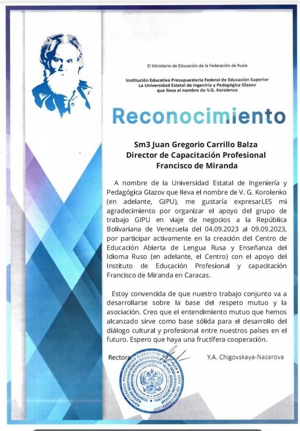 "¡Oportunidad única! El Instituto de Capacitación Profesional Francisco de Miranda (INFRAMIR) en convenio con la Universidad Estatal de Ingeniería de Glazo, Korolenko, Federación Rusa, ofrece cursos totalmente gratis en idioma ruso.